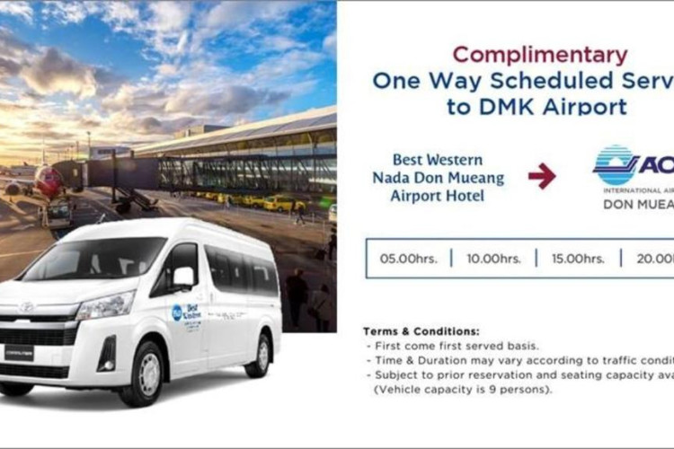 Hotelul oferă un serviciu regulat dus-intors de la hotel la Aeroportul Internațional Don Mueang. Timpul și durata pot varia in funcție de condițiile de trafic și sunt supuse rezervării prealabile și al capacității de locuri disponibile (capacitate vehicul: 9 persoane).