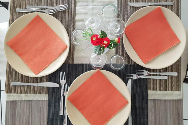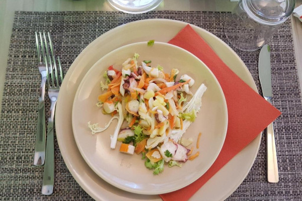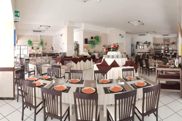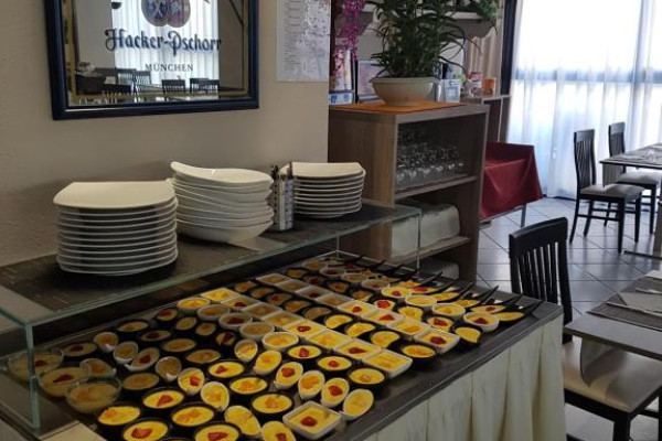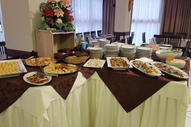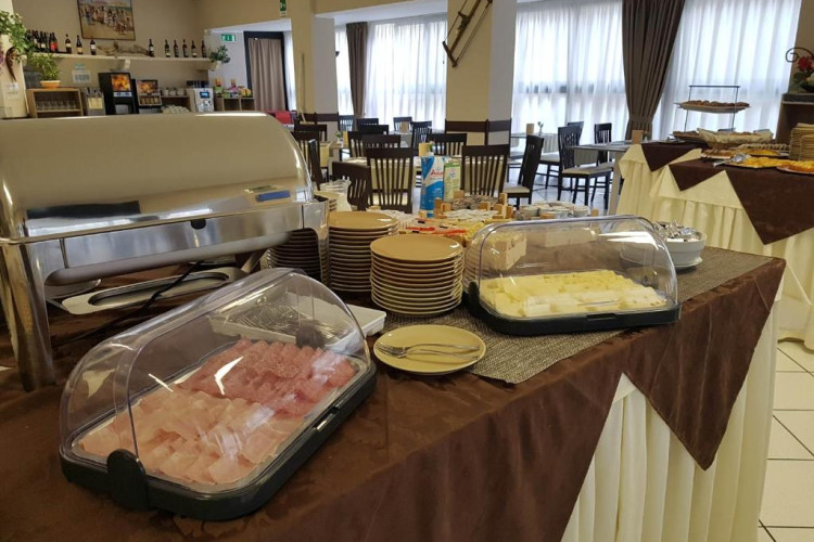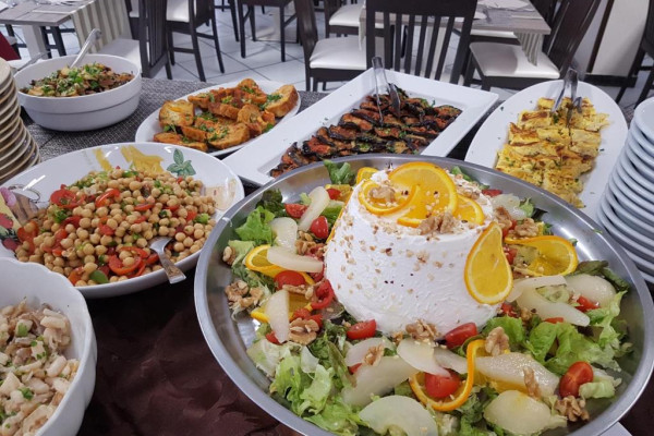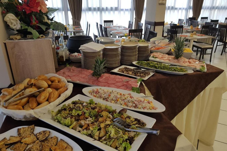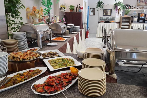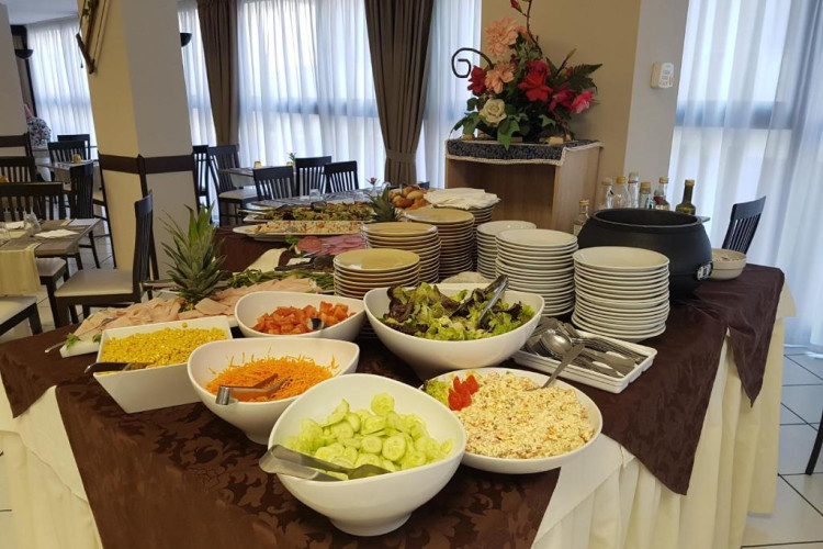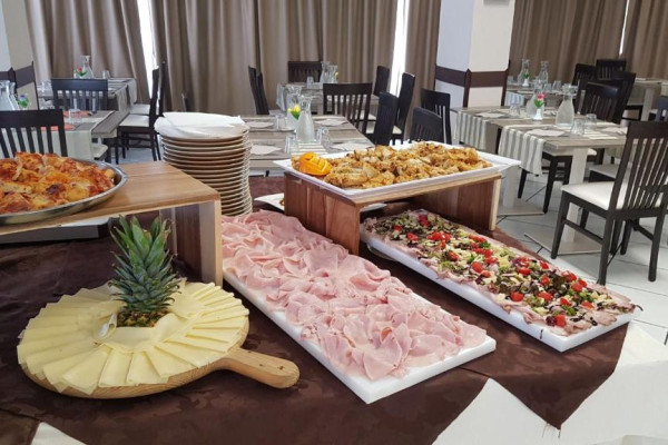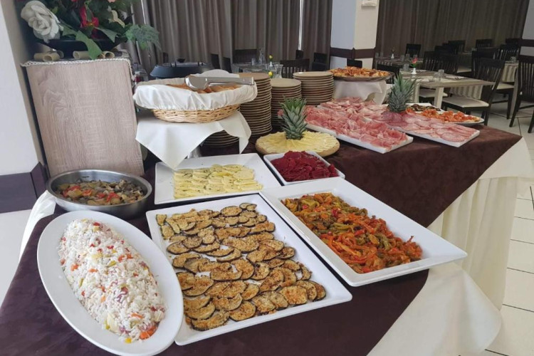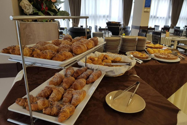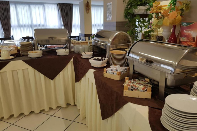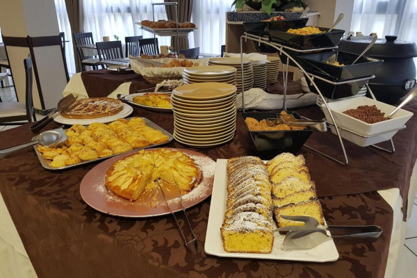 Bufetul de mic dejun oferit zilnic include prăjituri tradiționale, iaurt, dulceață, precum și alte preparate dulci și sărate. Restaurantul oferă un meniu à la carte și un bufet de aperitive/legume.