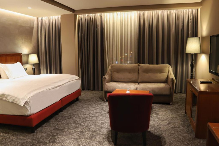 Cele mai multe dintre camere mari sunt decorate in rosu si includ TV prin satelit si minibar. De asemenea, acestea au baie privată cu uscător de păr si papuci.