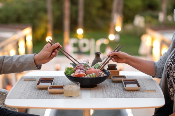 Hotelul Epic Sana Algarve are 5 restaurante – Abyad, Al Quimia, Open Deck, Lima și Uddo – care oferă un meniu contemporan, plin de gusturi rafinate, care vor duce oaspeții intr-o călătorie prin intreaga lume cu diferite arome, concentrandu-se in special pe cele din Algarve. După-amiaza și seara oaspeții se pot delecta cu o băutură relaxantă in barul modern Bluum.
