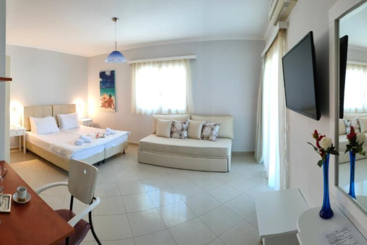 Tastefully decorated, all air-conditioned studios and 1-bedroom apartments of Valena open to a furnished patio or a balcony. Each has a flat-screen, satellite TV and a kitchen with stove or kitchenette with cooking hobs and dining table. Free Wi-Fi is available throughout.