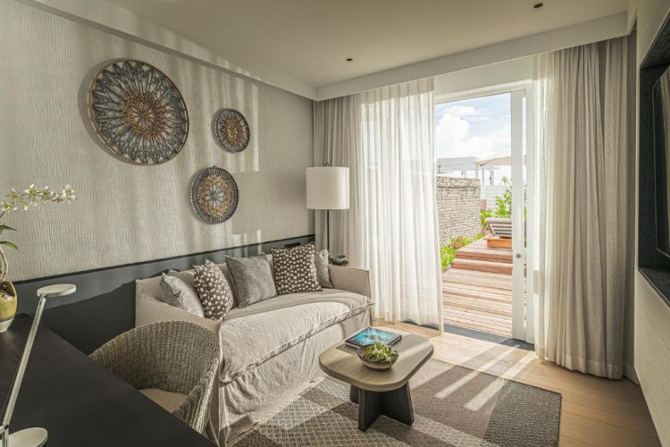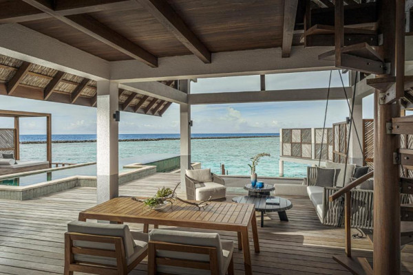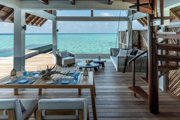Vilele și suitele, fie pe plajă, fie suspendate deasupra apei, imbină perfect eleganța contemporană cu arhitectura tradițională maldiveză. Facilitățile de top includ patru piscine, un centru spa ayurvedic, centru de scufundări PADI și un centru de conservare marină.