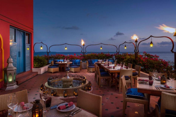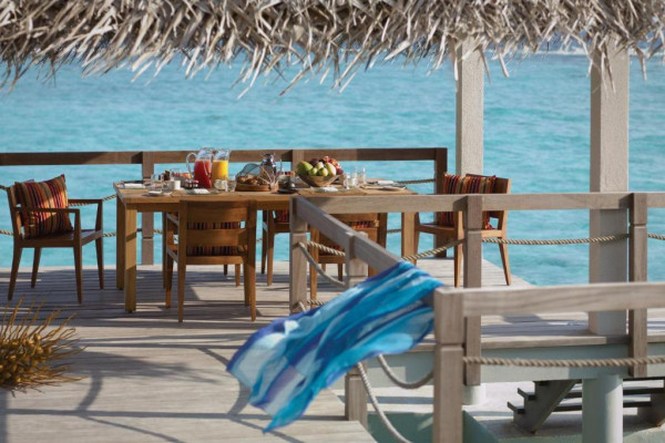 Experiența culinară este asigurată de patru restaurante care servesc preparate italiene, asiatice, arabe și internaționale. Resortul oferă activități precum snorkeling cu mantas, croaziere la apus, sporturi acvatice și programe educaționale despre viața marină.