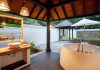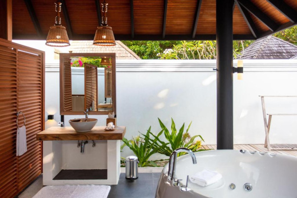 Toate unitățile de cazare spațioase au aer condiționat, TV cu ecran plat, aparat de cafea Nespresso, WiFi gratuit și piscină privată. Pune la dispoziție o gamă de vile situate pe plajă sau deasupra apei, cu vedere la răsărit sau la apus, piscină privată si baie privată. Unele includ cadă spa relaxantă, iar altele au dus cu efect de ploaie in aer liber. Pentru o vacanță cu adevărat specială există 3 resedinte personalizate pentru familii sau prieteni care călătoresc impreună.