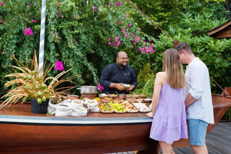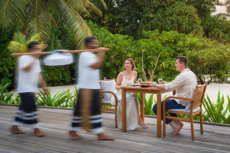 Ocean Grill este situat pe malul mării și servește preparate la grătar si fructe de mare. The Cellar, situat la subsol, oferă cine cu vin pentru cupluri. Alte opțiuni de luat masa includ mancăruri internaționale și preparate din bucătăria maldiviană la restaurantul Kakuni, pizza de casă la bistroul și piscina Andiamo de langă piscină, băuturi langă piscină și gustări la Infinity Pool & Bar. White Orchid Lounge are vedere incomparabilă la Oceanul Indian, cu un meniu de inspiratie asiatică si băuturi seara.