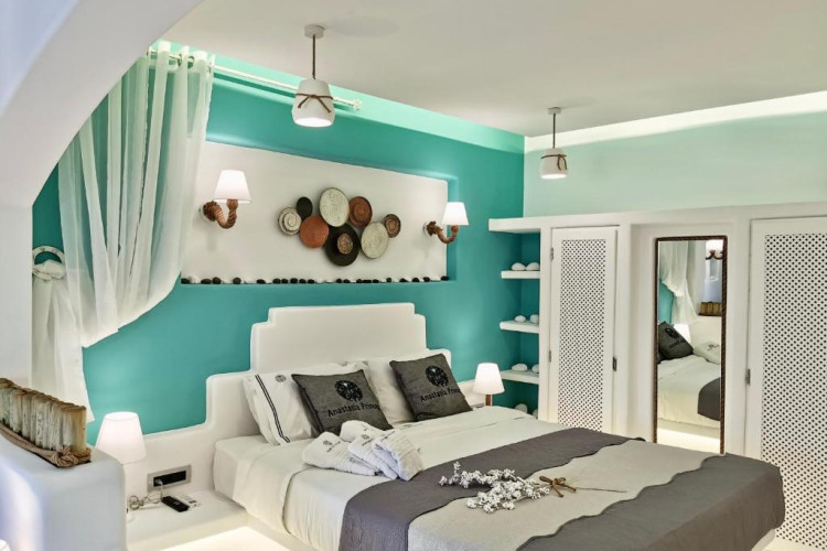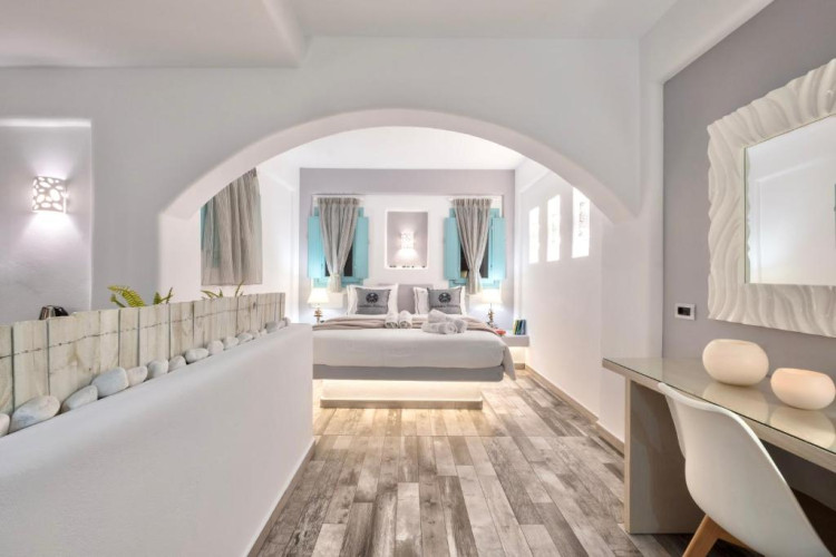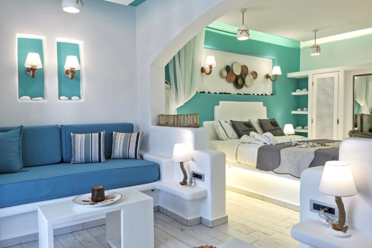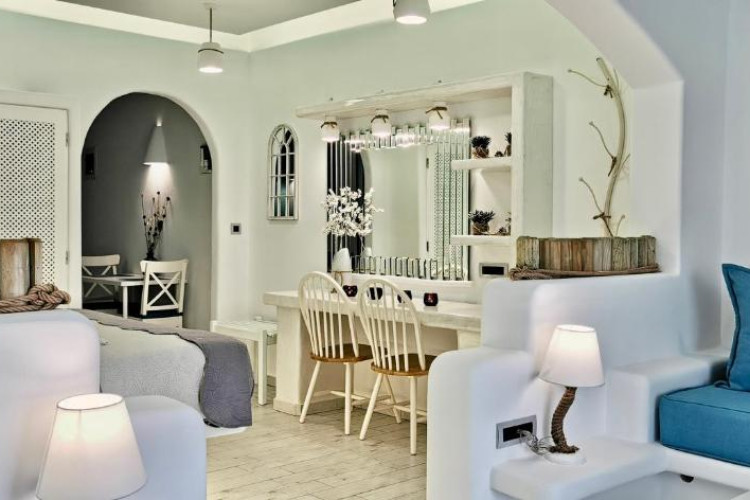 Răsfățați-vă cu confortul luxos al suitelor noastre cu design meticulos, fiecare impodobită cu mobilier contemporan, oferind vederi uimitoare la plajă și la orizontul Mării Egee. Indiferent dacă vă relaxați pe terasa privată, vă bucurați de briza mării sau vă scufundați in interioarele fastuoase, fiecare detaliu reflectă angajamentul față de un lux de neegalat.